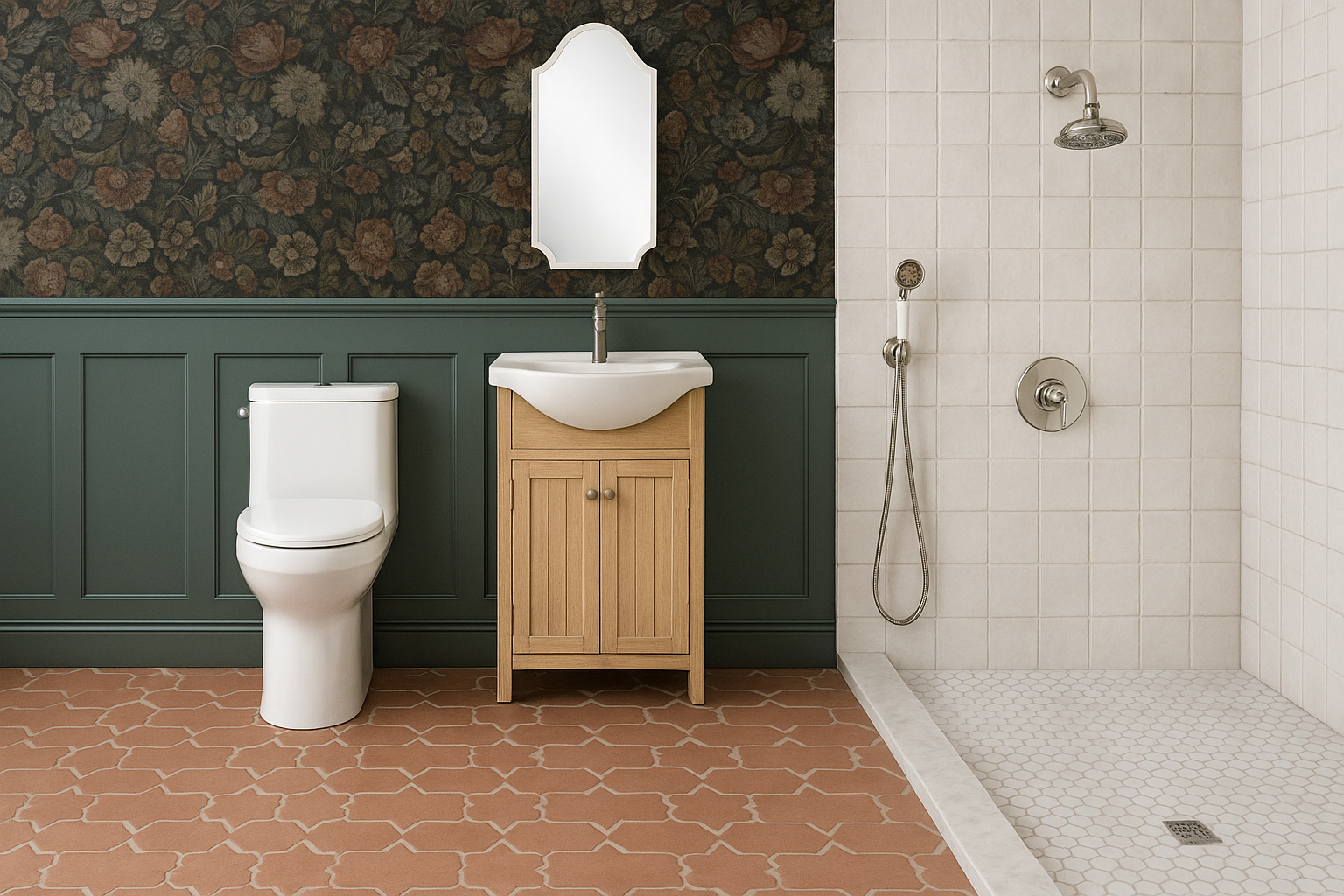 When renovating these days, labor costs are always the biggest chunk of the budget. It brings many of us so close to our max budget that we absolutely have to save money on the materials end. But how can you save money in materials without ending end up with a basic looking bathroom? Here is my bathroom rendition (thanks chat GPT), and below is how I sources my materials for less.